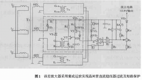 盡管功率場(chǎng)效應(yīng)VDMOS 和絕緣柵雙極型晶體管IGBT等電力半導(dǎo)體元器件層出不窮,且在電力電子技術(shù)領(lǐng)域占據(jù)重要位置,晶閘管(可控硅) 卻因耐高壓耐大電流沖擊的特性,仍有著穩(wěn)固的陣地,受到用戶的青睞。在擯棄電流采樣、放大和執(zhí)行等多個(gè)環(huán)節(jié)的情況下,將單結(jié)晶體管移相觸發(fā)器中的晶體管誤差放大器改為集成運(yùn)算放大器,就可實(shí)現(xiàn)晶閘管直流穩(wěn)壓器的過流及短路保護(hù),簡(jiǎn)化了電路結(jié)構(gòu),并提高了整機(jī)的穩(wěn)定可靠性能和AC - DC變換效率。