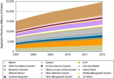2007-2012年,住宅應用的市場份額預計將從18.8%升至22.1%。同期政府在安防方面的支出將會下降。但是,用于監(jiān)控交通與零售店的視頻監(jiān)視增長較快,將推動中國安防市場的增長。安防系統(tǒng)在制造業(yè)的滲透率較高,預計未來在該領域的增長將會放緩。