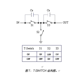 隔離度和串?dāng)_作為模擬開關(guān)的又一項重要性能指標(biāo),在高頻率信號的切換中越來越受到人們的關(guān)注。英聯(lián)電子的高隔離度模擬開關(guān)采用T-Switch結(jié)構(gòu),有效實現(xiàn)了信號隔離,抑制了信號串?dāng)_。圖7是T-Switch結(jié)構(gòu)圖。當(dāng)開關(guān)導(dǎo)通時,內(nèi)部的S1、S3閉合,S2斷開,從而實現(xiàn)信號的有效傳輸;當(dāng)開關(guān)斷開時,S1、S3斷開,S2 閉合,這樣輸入端-Cs-地形成了一條耦合回路,同時由于兩個Cs導(dǎo)通寄生電容的存在,輸入信號更難耦合到信號輸出級,這樣提高了開關(guān)的隔離度和抗串?dāng)_能力。