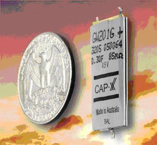 CAP-XX公司專(zhuān)門(mén)針對(duì)便攜式市場(chǎng)推出了GS/GW系列單節(jié)和雙節(jié)超級(jí)電容器(圖5)。這些電容提供了電能有限的電池的替代品,壽命非常長(zhǎng),單節(jié)配置電壓為2.3V,串聯(lián)連接的雙節(jié)電容器電壓可達(dá)4.5V。
