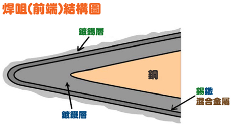 進(jìn)行焊接時,錫跟鐵會不斷產(chǎn)生混合反應(yīng),而由于所產(chǎn)生的混合金屬會從焊咀鍍層表面剝落,因此焊咀鍍層會逐漸被侵蝕掉,繼而錫會很快速地侵蝕焊咀內(nèi)的銅,最后會在很短時間內(nèi)造成焊咀穿洞(圖4)。
