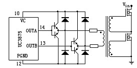 在驅(qū)動(dòng)小功率的MOSFET和IGBT時(shí),如果控制芯片的驅(qū)動(dòng)信號(hào)是圖騰柱輸出方式,且可提供一定的驅(qū)動(dòng)電流,那么可以直接由控制芯片來(lái)驅(qū)動(dòng)變壓器,如圖1所示: