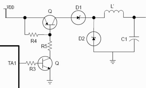 充電控制電路設計的核心是利用PWM控制MOSFET管的導通,MSP430F20X3系列時鐘頻率最高為16MHz。如果取PWM分辨率為9位,MOSFET管工作頻率為16000000/512=32768 (Hz),在音頻范圍外,不會產生噪聲??紤]到脈沖寬度與電源的輸出并非線性關系,電源輸出最多能控制到1/256,完全滿足設計精度的需要。原理圖如圖2。