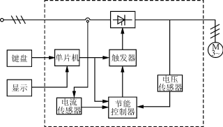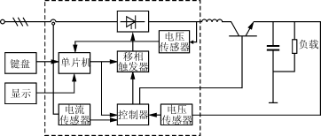較為完整的ITPM一般由電力晶閘管,移相觸發(fā)器,軟件控制的單片機,電流、電壓、溫度傳感器以及操作鍵盤,LED或LCD顯示等部分組成。如圖1所示。