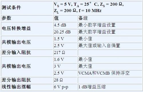 表3. ADL5356和AD8376接口和增益參數(shù)