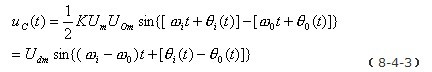 用低通濾波器LF將上式中的和頻分量濾掉,剩下的差頻分量作為壓控振蕩器的輸入控制電壓uC(t)。即uC(t)為: