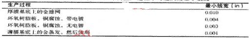 走線寬度上的第二個不太重要的限制來自生產(chǎn)制造過程。表1列出了在各種不同的生產(chǎn)過程中可達(dá)到的最小走線寬度。