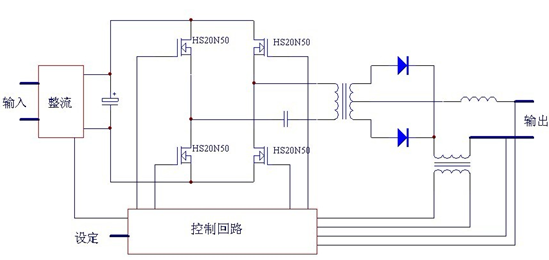 - 主控芯片選用電源IC KA3525驅(qū)動12個HOMSEMI大功率MOSFET HS20N50