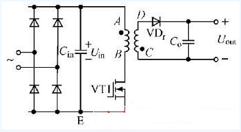 在圖1所示的反激式開(kāi)關(guān)電源中,變換器工作于連續(xù)模式時(shí),開(kāi)關(guān)管VT導(dǎo)通后,B點(diǎn)電位低于A點(diǎn),一次繞組匝間電容便會(huì)充電,充電電流由A流向B;VT關(guān)斷后,寄生電容反向充電,充電電流由B流向A。這樣,變壓器中便產(chǎn)生了差模傳導(dǎo)EMI。同時(shí),電源元器件與大地之間的電位差也會(huì)產(chǎn)生高頻變化。由于元器件與大地、機(jī)殼之間存在著分布電容,便產(chǎn)生了在輸入端與大地、機(jī)殼所構(gòu)成回路之間流動(dòng)的共模傳導(dǎo)EMI電流。