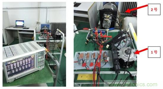 此次測試的對象為小型電機(jī)系統(tǒng),系統(tǒng)分為驅(qū)動器、電機(jī)平臺、測試,3個(gè)部分。驅(qū)動器輸出通過電纜連接到電機(jī)平臺,電機(jī)轉(zhuǎn)軸上安裝扭矩
