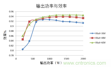 參考設(shè)計(jì)在降壓模式(作為充電器)下的峰值效率為94%,在升壓模式(放電期間)為95%,平均效率高于93%。這種高放電效率為電池提供更長(zhǎng)的運(yùn)行時(shí)間。在36V至60V的寬輸入電壓范圍內(nèi),使用電流饋電全橋級(jí)在放電模式下實(shí)現(xiàn)高效率,其優(yōu)化隔離變壓器的設(shè)計(jì),以繞組中的最小化均方根(RMS)電流,同時(shí)最小化通過(guò)輸入電容器的紋波電流。