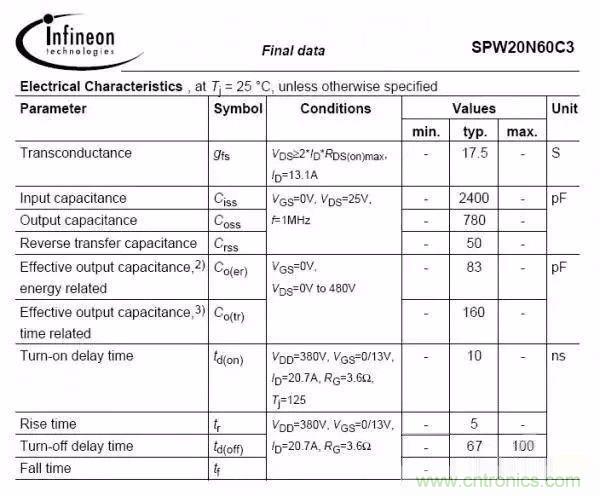參照以上兩圖,是不同型號的MOS管,對比下輸入結(jié)電容和輸出結(jié)電容,2400PF與800PF;780PF與2200PF;一看就知道第一個規(guī)格是快管,第二個是慢管,這時候決定開關(guān)速度還要與驅(qū)動電阻匹配;常規(guī)情況驅(qū)動電阻在10R-150R比較多,選取驅(qū)動電阻與結(jié)電容有關(guān),針對快板驅(qū)動電阻可適當(dāng)增大,慢管驅(qū)動電阻可適當(dāng)減??; 對于二極管,有肖特基二極管,快回復(fù)二極管,普通二極管,還有一種用的比較少的SIC二極管,開關(guān)速度SIC二極管幾乎為零,等于是沒有反向恢復(fù),開關(guān)輻射最小,并且損耗也最小,唯一的缺點就是價格昂貴,故很少用;其次就是肖特基二極管,正向壓降低,反向恢復(fù)時間短,依次是快回復(fù)和普通二極管;需要在損耗和EMC之間折中;一般可采取改吸收以及套磁珠等措施整改EMC;