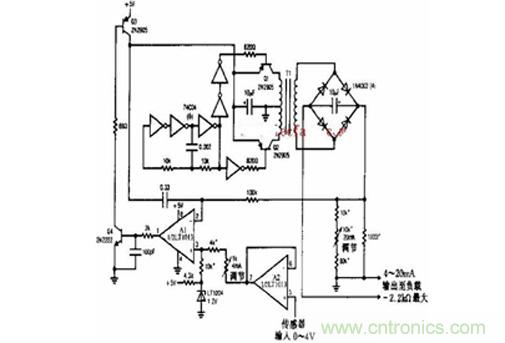注:電路變送器的精度為12位。1%薄膜電阻,T1為PICO-31080。LT1013見(jiàn)說(shuō)明。
