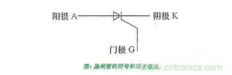 晶閘管也是一個三端器件,按照現(xiàn)有的應用習慣,其三個端子定義為陽極(A,anode)、陰極(K,cathode)和門極(G,gate)。晶閘管的符號以及對應三個端子的定義如圖1所示。