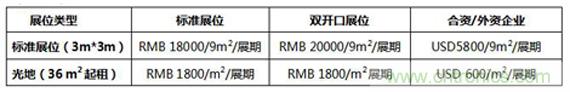 標(biāo)準(zhǔn)展位: (3M×3M)展位(包括三面圍板、楣板、一桌二椅、220V電源插座、清潔費(fèi)等)。