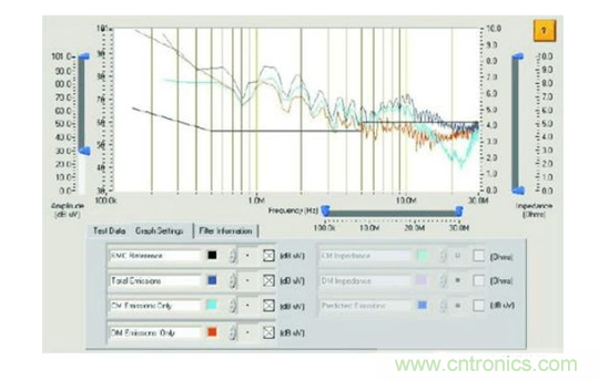 知道設備的干擾特性和輸入阻抗特性后,設計或者選擇一個濾波器就變得簡單了。如果使用一個現(xiàn)成的濾波器,可以調(diào)用過去積累的濾波器數(shù)據(jù)庫,比對濾波器參數(shù),找到一個合適的濾波器。如果沒有合適的或者想專門設計一個專用濾波器,可以借助專用的濾波器設計軟件。在確定一個濾波器模式后輸入濾波器一些簡單的約束條件,設計軟件根據(jù)阻抗特性自動計算出最合適的組件值,以及提供最合適的衰減。(如圖6所示)