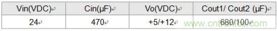 為了進一步穩(wěn)定輸入電源,在輸入端增加一電容Cin,若為了進一步減小輸出紋波和噪聲,可在輸出端增加一串聯(lián)等效阻抗小的電容Cout,但容值不能超過該產(chǎn)品的最大容性負載,否則會造成電源模塊啟動不良。推薦外接電容值,如表1所示。