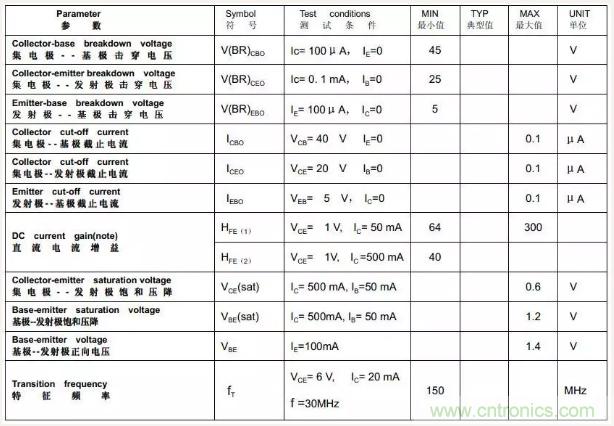 對(duì)于9013、9012而言,飽和時(shí)Vce小于0.6V,Vbe小于1.2V。下面是9013的特性表: