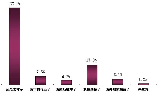 - 工程師目前狀況:65. 1%是老樣子,5.1%享受到了升職或加薪,但也有7.3%的已經(jīng)下崗