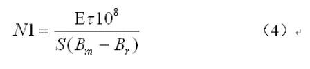 (4)式就是計算反激式開關(guān)電源變壓器初級線圈N1繞組匝數(shù)的公式。式中,N1為變壓器初級線圈N1繞組的最少匝數(shù),S為變壓器鐵心的導(dǎo)磁面積,單位:平方厘米;Bm為變壓器鐵心的最大磁感應(yīng)強(qiáng)度,單位:高斯;Br為變壓器鐵心的剩余磁感應(yīng)強(qiáng)度,單位:高斯),Br一般簡稱剩磁;τ = Ton,為控制開關(guān)的接通時間,簡稱脈沖寬度,或電源開關(guān)管導(dǎo)通時間的寬度,單位:秒;E為工作電壓,單位為伏。式中的指數(shù)是統(tǒng)一單位用的,選用不同單位制,指數(shù)的值也不一樣,這里選用CGS單位制,即:長度為厘米(cm),磁感應(yīng)強(qiáng)度為高斯(Gs),磁通單位為麥克斯韋(Mx)。