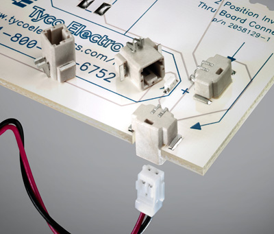 泰科電子此次推出的全新SMT通板連接器具備2位至6位并使用表面貼裝技術,運用時穿過電路板使接口轉(zhuǎn)至PCB板的背面,該連接器的反向設計使得在建筑、住宅及某些商業(yè)應用上的固態(tài)LED 照明的安裝操作更為簡便。該連接器與標準型Mini CT連接器完全匹配。Mini CT連接器適合24 AWG電線,額定電流為3安培。