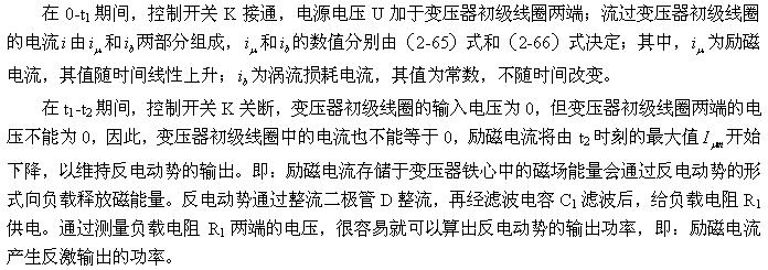 根據(jù)(2-65)式和(2-66)式以及圖2-19和圖2-20的分析結(jié)果,我們可以用圖2-25電路來測試單激式開關(guān)變壓器的磁滯損耗和渦流損耗,以及勵(lì)磁電流反激輸出的功耗。