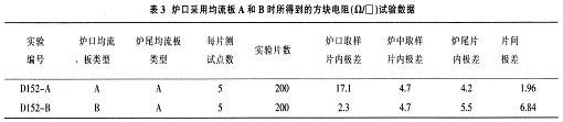 從表4可看出,廢氣排放口離恒溫區(qū)越遠(yuǎn),即離爐口越近,爐口的方阻片內(nèi)/片間均勻性改善越好,但廢氣排放的同時(shí)也有大量熱能的排放,在排放口區(qū)域聚集的熱能較多,因考慮到爐門的低溫(一般為小于200℃)要求,在一定程度上又限制了排放口到爐門的距離不能太近。所以,生產(chǎn)中廢氣排放口的較佳位置是在一個(gè)兩向平衡距離范圍內(nèi)。