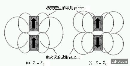 此處采取在連接移動通訊系統(tǒng)折疊機(jī)殼上增設(shè)阻抗(Impedance)Z,如此就能夠利用一種天線獲得多樣的放射pattern,這種設(shè)計最大優(yōu)點(diǎn)是可以大幅縮小天線的設(shè)置場所與天線結(jié)構(gòu)物的尺寸。