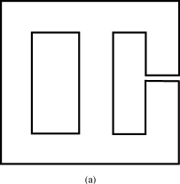 常見的多功能鐵心結(jié)構(gòu)主要是平面布置的形式(圖9)。圖9(a)是一個變壓器和一個電抗器的鐵心結(jié)構(gòu)。圖9(b)是一個變壓器和兩個電抗器的鐵心結(jié)構(gòu)。圖10巧妙地采用兩種軟磁材料組成多功能鐵心結(jié)構(gòu)。圖10(a)外框鐵心采用高導磁合金材料,形成變壓器,中間采用低導磁材料形成電抗器。除了這種框形加中間柱結(jié)構(gòu)而外,還有圖10(b)的橋式多功能鐵心結(jié)構(gòu),四個橋臂用高導磁材料,橋?qū)蔷€用低導磁材料或者開一個氣隙。