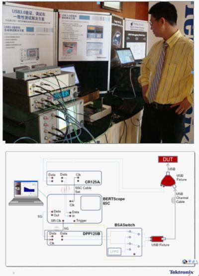 如USB2.0應(yīng)用一樣,泰克為USB3.0的發(fā)射機(jī)測試提供了超過規(guī)范要求的完整解決方案(手動和自動可選)。對于復(fù)雜得多的接收機(jī)測試,泰克則展示了最新的BERTScope解決方案,可幫助開發(fā)者加快USB3.0的一致性測試速度。