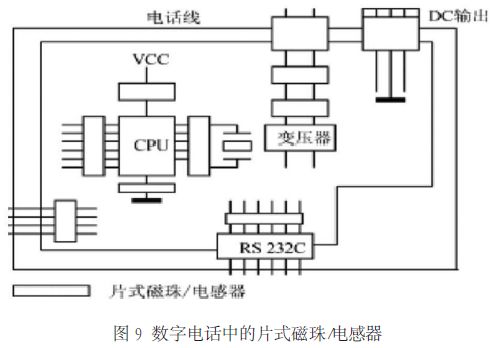圖8、圖9、圖10 分別示出了磁珠在直流供電回路、數(shù)字電話、抑制 EMI 噪聲濾波器中的應(yīng)用實(shí)例。