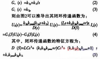 對于圖1所示的單相全橋逆變器,可得到下面的單相逆變電源的連續(xù)域數(shù)學模型式: