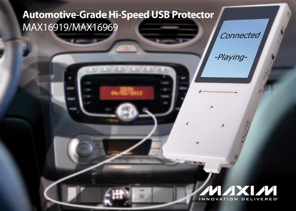 Maxim Integrated Products, Inc 推出高速USB 2.0汽車級保護(hù)器 MAX16919/MAX16969,器件具有iPod®/iPhone®快充檢測和USB主機(jī)充電器檢測功能,適用于所有USB設(shè)備。該系列保護(hù)器的快充檢測功能支持高速USB (480Mbps)和全速USB (12Mbps)工作,使用戶即使在駕駛中也能夠方便地對其USB設(shè)備進(jìn)行充電。此外, MAX16919/MAX16969是僅有的汽車級高集成度USB保護(hù)器,具備多項(xiàng)汽車級應(yīng)用優(yōu)勢,其中包括:對電池短路和對地短路保護(hù),這一功能完全滿足目前惡劣的汽車應(yīng)用環(huán)境對設(shè)備保護(hù)功能的要求。該系列器件已成為車載收音機(jī)、導(dǎo)航、互聯(lián)及USB集線器等應(yīng)用的理想選擇。