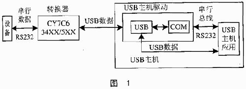 主機必須能夠通過設備驅(qū)動接收USB數(shù)據(jù),并且使這些數(shù)據(jù)對處理這些請求的應用程序有效。在主機中必須有一個驅(qū)動負責處理USB傳輸、辨識設備、向USB設備收發(fā)數(shù)據(jù);同時,還需要有一個設備驅(qū)動-虛擬化串行口,仿效真實的串口。這個驅(qū)動必須能夠像真實的串口接收和發(fā)送USB數(shù)據(jù)。