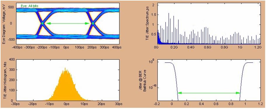 圖11 2457.6Mbps發(fā)送側眼圖(經(jīng)5inches FR4走線,調整了最優(yōu)去加重補償)