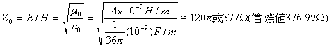 這種外貌是由天線所觀測(cè)到的物理「輪廓」;這就好像從河邊向河中打水漂一樣,我們所看到的水波是一波波的漣漪。場(chǎng)傳播是從場(chǎng)的點(diǎn)源,以光速的速度向外輻射出去;其中,。電場(chǎng)成份的測(cè)量單位是V/m,磁場(chǎng)成份的測(cè)量單位是A/m。電場(chǎng)(E)和磁場(chǎng)(H)的比率是自由空間(free space)的阻抗。這里必須強(qiáng)調(diào)的是,在平面波中,波阻抗Z0,或稱作自由空間的特性阻抗,是和距離無關(guān),也和點(diǎn)源的特性無關(guān)。對(duì)一個(gè)在自由空間中的平面波而言: