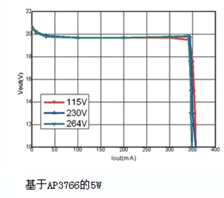 2. AP3766采用專(zhuān)有的“亞微安啟動(dòng)電流”技術(shù),僅需0.6μA的啟動(dòng)電流,因此降低了啟動(dòng)電阻R1和R2上的功耗,提高了系統(tǒng)效率。典型5W應(yīng)用效率大于80%,空載功耗小于30mW。