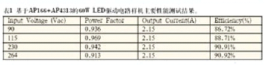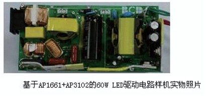 AP1661是一款工作于臨界導(dǎo)通模式下的有源功率因數(shù)校正控制芯片,可廣泛應(yīng)用于開(kāi)關(guān)電源、LED驅(qū)動(dòng)和電子鎮(zhèn)流器的預(yù)調(diào)整變換器控制。該芯 片內(nèi)部包括1個(gè)啟動(dòng)定時(shí)器可滿足待機(jī)應(yīng)用要求,1個(gè)能實(shí)現(xiàn)接近于1的功率因數(shù)的單象限乘法器和1個(gè)零電流檢測(cè)模塊確保臨界斷續(xù)方式工作。AP1661的圖 騰柱驅(qū)動(dòng)輸出能夠?yàn)橥獠縈OSFET或IGBT提供最大600mA驅(qū)動(dòng)電流和800mA關(guān)斷電流能力。采用了先進(jìn)的雙極型互補(bǔ)金屬氧化物半導(dǎo)體設(shè)計(jì)和制造 工藝,具有低啟動(dòng)電流,低工作電流和低功耗的特點(diǎn)。AP1661同時(shí)具有完善的保護(hù)功能,包括過(guò)壓保護(hù)、帶有滯后的輸入欠壓鎖定和乘法器輸出嵌位以限制開(kāi) 關(guān)最大峰值電流。圖7為該方案60W應(yīng)用電路樣機(jī)實(shí)物照片。圖8為應(yīng)用該方案LED直管燈實(shí)物照片。