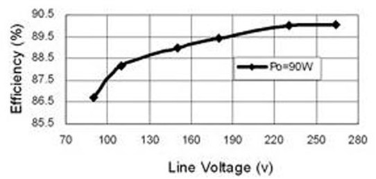 2 高功率因數(shù),采用有源功率因數(shù)校正控制芯片AP1661,功率因數(shù)PF>0.9,滿足IEC61000-3-2諧波標(biāo)準(zhǔn)。