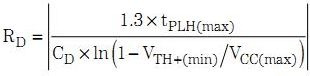 當(dāng)總線電壓變?yōu)檎╒Bus > 200 mV)時(shí),RX1 輸出變?yōu)楦撸潋?qū)動(dòng) DR2 輸出為高,并通過(guò) RD 對(duì) CD 緩慢充電。必須正確計(jì)算最小時(shí)間常量(RD × CD),以使最大電源電壓 VCC(max) 和最小正反相器輸入閾值VTH+(min) 時(shí),延遲時(shí)間tD 超過(guò)驅(qū)動(dòng)器最大低到高傳播延遲 tPLH(max),即超出 30%。例如,電容為 CD = 100 Pf 時(shí),RD 的要求電阻值為: