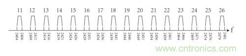 在上圖中,我們可以看到小米的多功能網(wǎng)關(guān)將ZigBee芯片JN5168和Wi-Fi模塊集成到一個(gè)小小的電路板上。這個(gè)芯片使用的ZigBee頻道是全球免費(fèi)頻道,2.4GHz.Zigbee協(xié)議802.15.4標(biāo)準(zhǔn)把2.4 GHz的ISM頻段劃分為16個(gè)信道,每個(gè)信道帶寬為2 MHz,ZigBee頻譜列表如下所示: