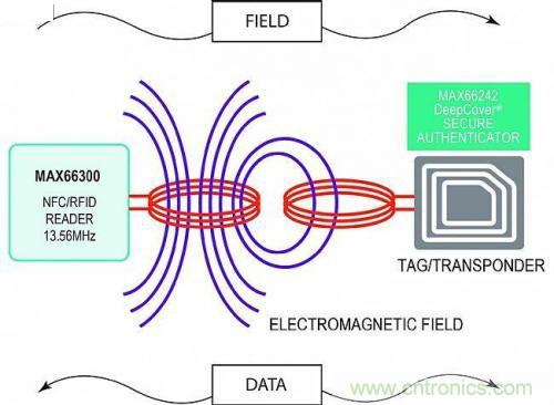 為涵蓋較寬的應(yīng)用,RFID和NFC在本文的隨后討論中可互換使用。我們將簡要介紹NFC/RFID技術(shù),給出常見的電路模塊,OEM可用來在便攜式電子產(chǎn)品中實現(xiàn)新型非接觸式NFC/RFID功能。示例電路基于DeepCover MAX66242雙接口安全無源標簽。利用給出的電路,很容易將NFC/RFID短距離無線技術(shù)增加到嵌入式電子平臺。我們將結(jié)合幾種實際使用情況展開討論。