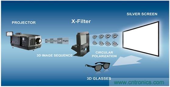 偏光式3D的基本原理其實與紅藍3D差不多,只不過在技術上相對成熟,采用兩個不同偏振方向的偏振片作為眼鏡,這樣垂直偏振的左眼將接受不到水平偏振的光,同樣水平偏振的右眼也接受不到垂直偏振的光。這樣我們在投射圖像的時候只需要將不同角度的圖像信息以不同偏振態(tài)的光發(fā)射出來,我們的兩個眼睛就會分別看到不同角度的信息,形成立體視覺。