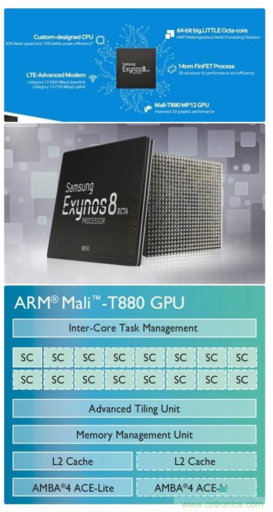 GPU方面是絕對(duì)的亮點(diǎn),和華為麒麟950一樣選擇了Mali-T880,但后綴是“MP12”,開(kāi)了12個(gè)核心(完整16個(gè)),性能自然有大幅度提升。相比之下,麒麟950只有4個(gè)核心。