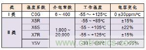 圖一,I類(lèi)和II類(lèi)MLCC的溫度特性和隨溫度的電容變化