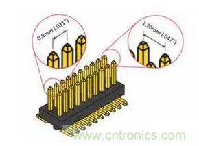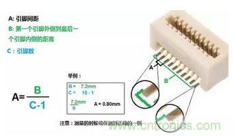 請注意,在這個例子中,同一排相鄰引腳間距的測量和兩排之間引腳間距是不一樣的。同一排相鄰引腳間距的測量和兩排之間引腳間距可以相同,所以連接器一定要仔細(xì)檢查這兩個參數(shù)。