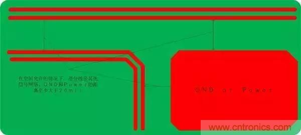 6.為了減少串?dāng)_,在空間允許的情況下,其他信號網(wǎng)絡(luò)及地離差分線的間距至少20mil(20mil是經(jīng)驗值),覆地與差分線的距離過近將對差分線的阻抗產(chǎn)生影響;