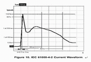 以系統(tǒng)級的方法來定義典型的ESD事件所采用的最常見的波形,是以其亞納秒上升時(shí)間和高電流電平(參見圖1)為顯著特征的IEC61000-4-2波形。這種波形的規(guī)范要求采用四級ESD量級。大部分設(shè)計(jì)工程師都要求把產(chǎn)品限定到最高級的8kV的接觸放電或15kV的空氣放電。當(dāng)進(jìn)行元器件級測試時(shí),因?yàn)榭諝夥烹姕y試在這樣的小型元器件上是不能重復(fù)的,接觸放電測試則是最適合的測試方式。