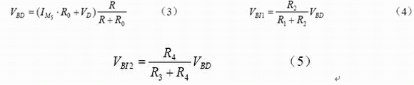 電路的工作原理為:由M1—M4和R5組成的自偏置電路產(chǎn)生具有正溫度系數(shù)的電流,它在電阻R0所產(chǎn)生的壓降和具有負(fù)溫度系數(shù)的PN 結(jié)壓降(D0上的壓降)相加,從而輸出零溫度系數(shù)的基準(zhǔn)電壓VBD;為滿足同一電路中輸出不同的基準(zhǔn)電壓源,利用電阻分壓將VBD 分成了VBI1及VBI2輸出;C0和R6組成啟動電路。