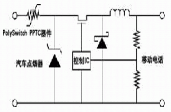 (2)轉(zhuǎn)換器出現(xiàn)故障。如果轉(zhuǎn)換器或起控制作用的集成電路出現(xiàn)故障,造成短路,這時(shí)PPTC保護(hù)器件進(jìn)入高阻抗?fàn)顟B(tài),保護(hù)汽車線路及熔斷絲。